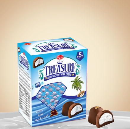 Unveiling Treasure, the ultimate indulgence for chocolate enthusiasts seeking a delightful surprise with every bite. These center-filled chocolates come in four tantalizing flavors: rich chocolate, luscious strawberry, exotic coconut, and velvety caramel. Get ready to embark on a journey of delectable discovery.